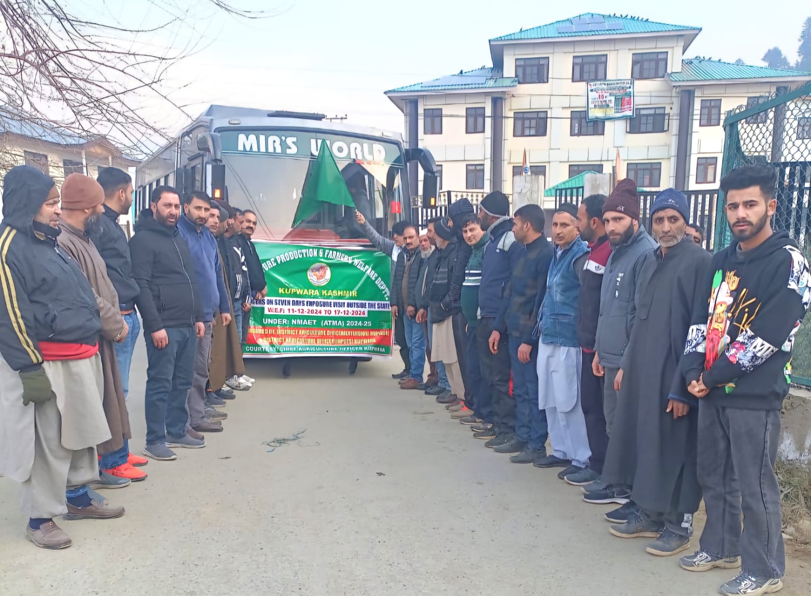 Kupwara, December 11 2024: The Agriculture Production and Farmers Welfare Department, Kupwara, today flagged off 38 farmers for a seven-day exposure visit to Jammu, Ludhiana, and Kurukshetra under the Agricultural Technology Management Agency (ATMA) scheme.
